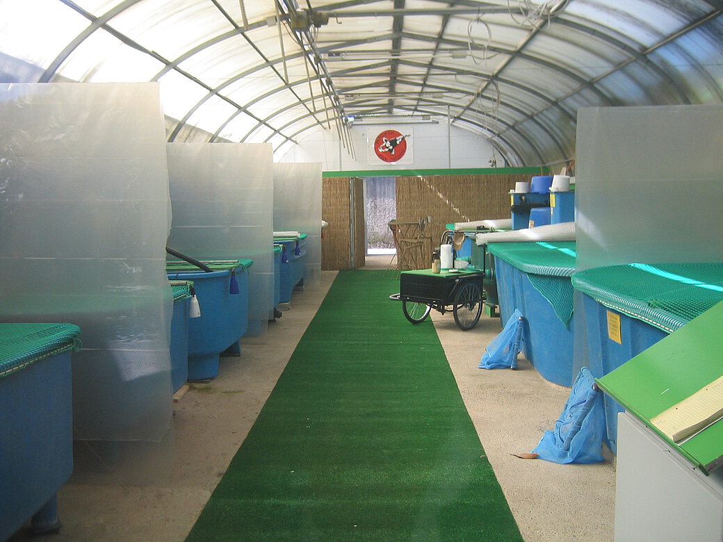 Wir halten unsere Koi in einem separaten Quarantänebereich und die Koi erhalten je Züchter ein eigenes Becken während der ganzen Quarantänezeit. Ebenso legen wir größten Wert auf beste Wasserqualität in unserer Anlage. Jedes Hälterungsbecken hat seine eigene Filteranlage und wird bei Bedarf beheizt.