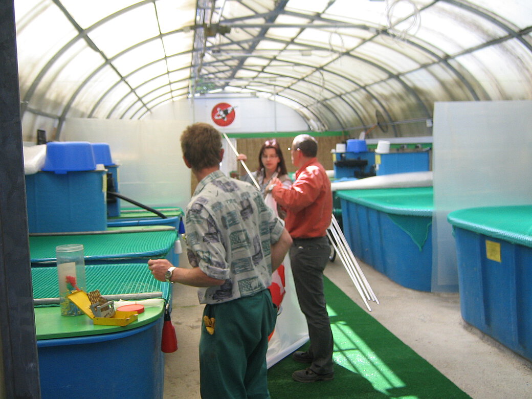 Unsere Koi erhalten eine Eingangsuntersuchung mit KHV-Test durch Herrn Dr. Bretzinger. Es erfolgt eine 6-8 wöchige Quarantänezeit mit einer Abschlußuntersuchung durch Herrn Dr. Bretzinger mit nochmaligem KHV-Test.