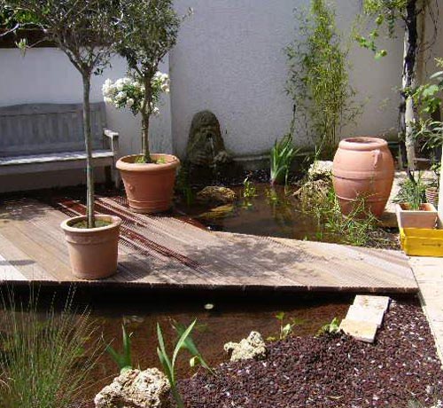 Die Terrasse am Gartenteich reicht auch schon, den Sommer ganz anders zu genießen.